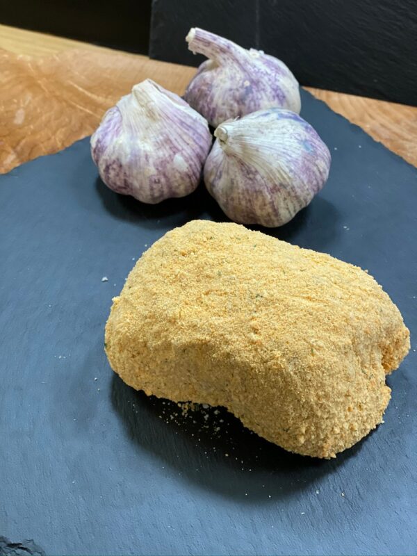 A single tenderized chicken breast wrapped around our house made black forest ham and Havarti cheese. Rolled in a Romano cheese breading.