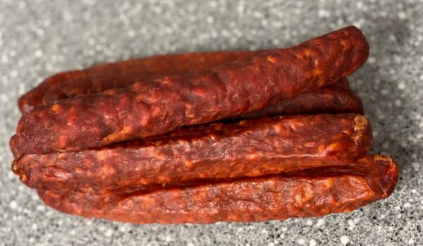 Smoked pork sausage with garlic and hot Hungarian spices.