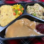 Glenwood’s Oven Roasted Turkey Breast Sliced with cranberry sauce, gravy and our old fashion stuffing, plus peas, carrots and corn. Heat and serve.