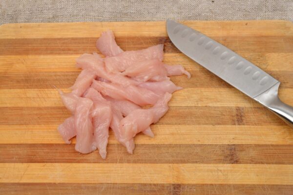 Chicken stir fry cut from our boneless skinless chicken breast, ready for your sauces and marinades.